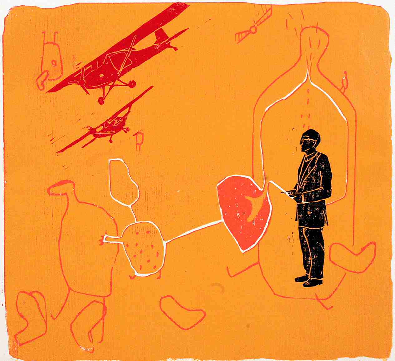 Schau an (G. Damisch), Farbholzschnitt, Mischtechnik, 35 x 25 cm, 2006